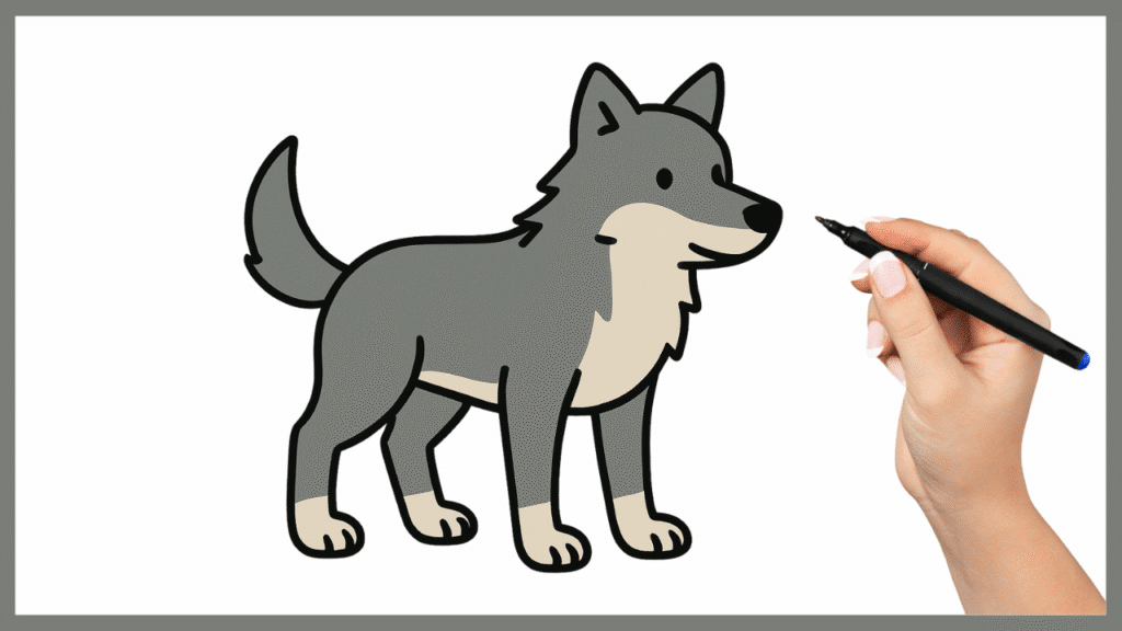 Le visage du loup est sans doute la partie la plus délicate et détaillée à réaliser. Après avoir défini la structure de base, concentrez-vous sur l’amélioration et la finesse des traits distinctifs de cet animal. Cette étape déterminera le réalisme et la vivacité du portrait.